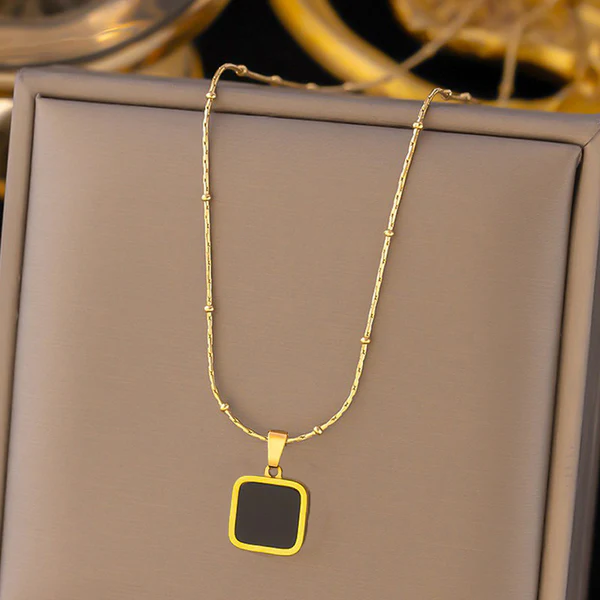 Gold-Plated Anti Tarnish Black Geometric Pendant