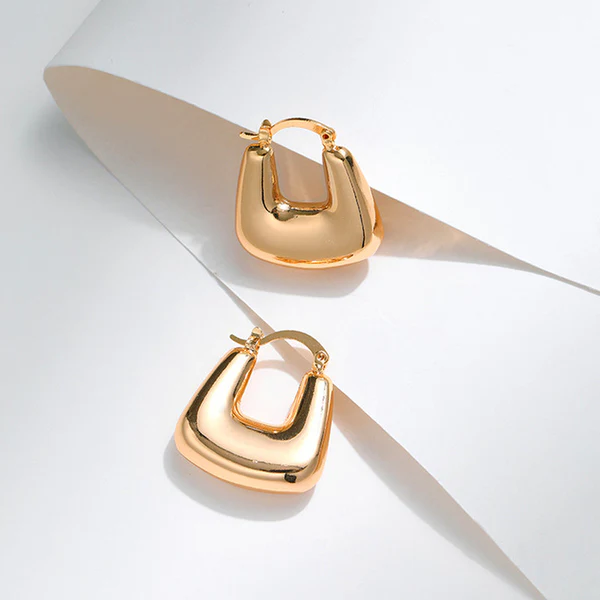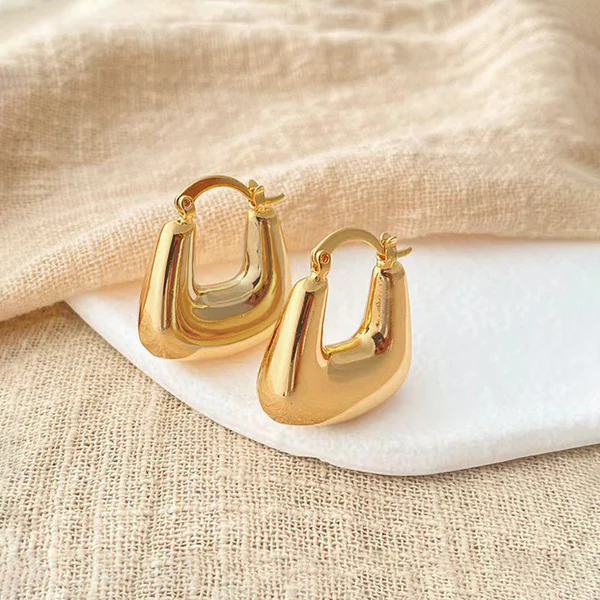 Gold Plated Anti Tarnish Chunky Geometric Statement Hoop Earrings