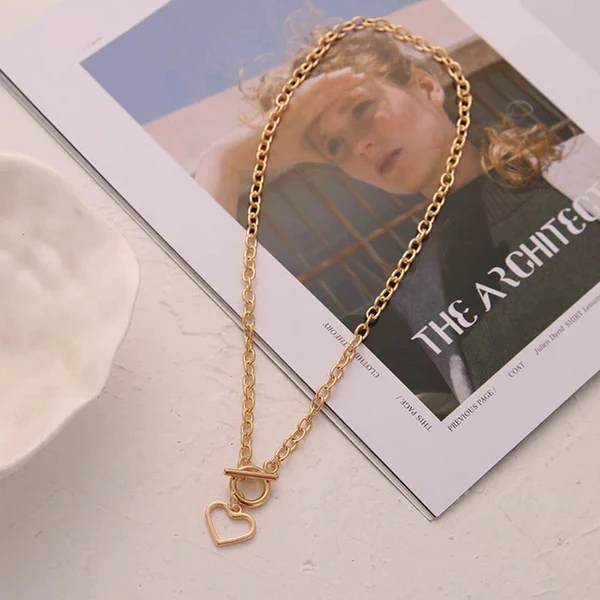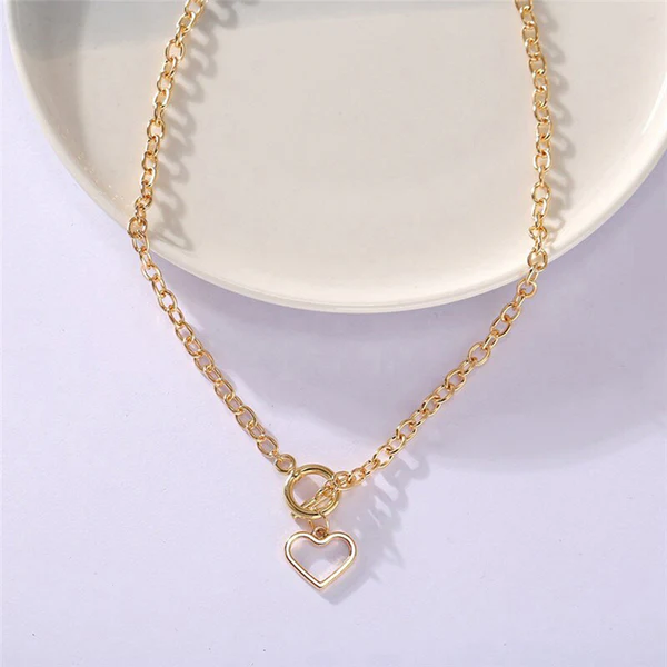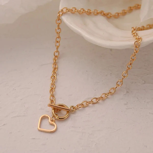 Heart Gold Plated Single Chain Necklace Jewellery For Women