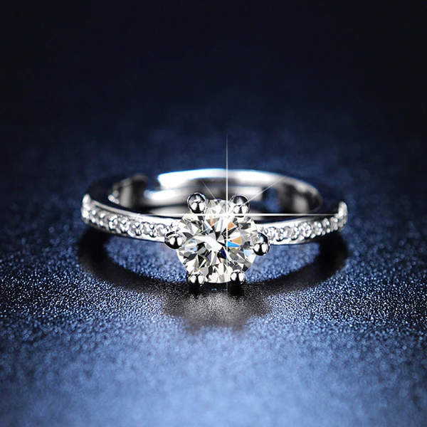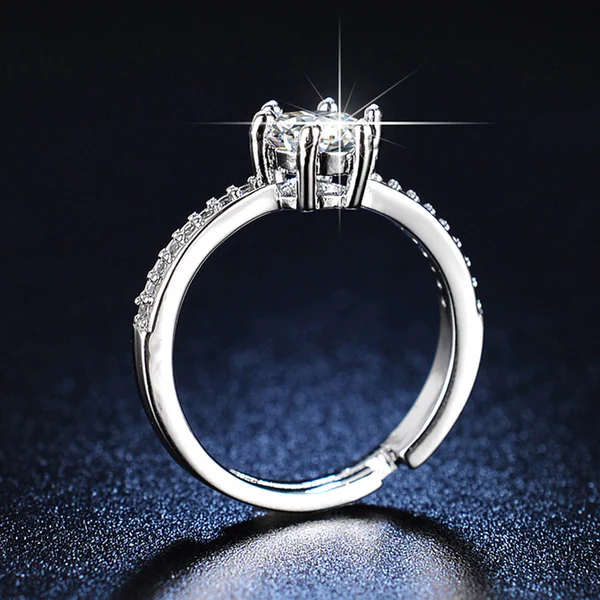 Silver Plated American Diamond Studded Anti Tarnish Solitaire Adjustable Finger Ring