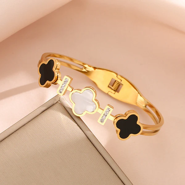 This Stainless Steel Gold Plated Mother of Pearls Three Clover Leaf Irish Design Anti-Tarnish Bracelet For Women balances design, versatility, and craftsmanship, making it an ideal addition to any collection. Whether you’re a business owner selling offline or an e-commerce seller on platforms like Meesho, Amazon, Ajio, or Flipkart, this product is designed to meet the diverse needs of your customers.