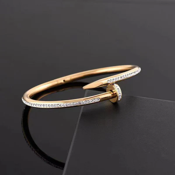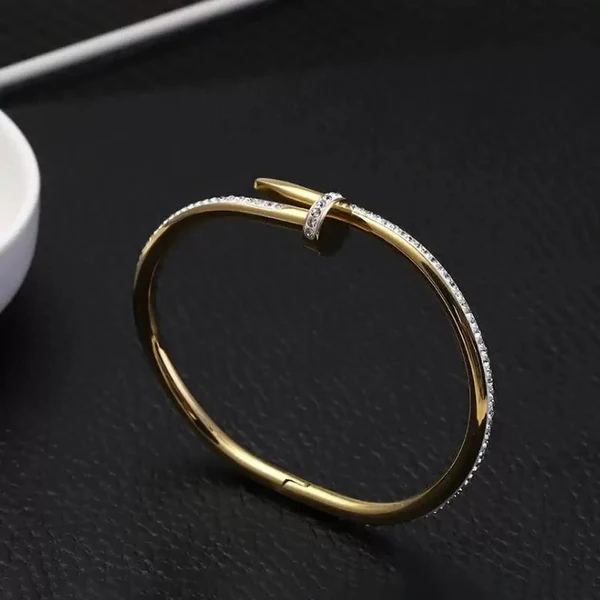 Stainless Steel Gold Plated Stainless Steel Anti Tarnish AD Studded Nail Bracelet For Women