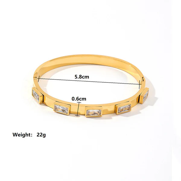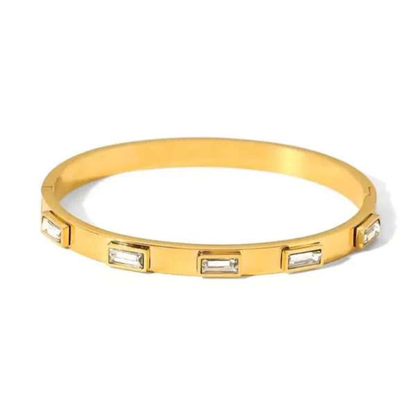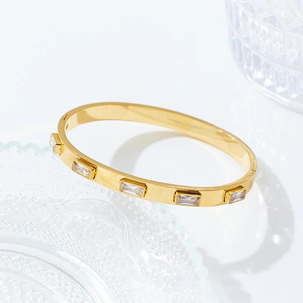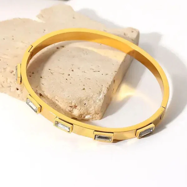 Stainless Steel Gold-Plated White Rectangular American Diamond studded Bangle-Style Anti-Tarnish Bracelet For Women